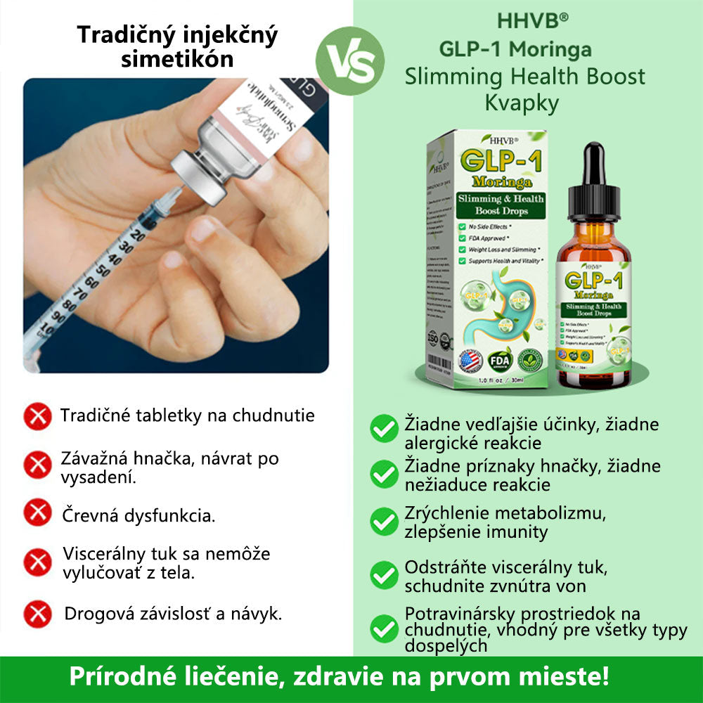Kvapky TLOPA® GLP-1 sú obohatené o moringu, prírodnú superpotravinu, ktorá podporuje metabolizmus, napomáha spaľovaniu tukov a pomáha regulovať hladinu cukru v krvi, zároveň zlepšuje zdravie kĺbov a kostí a zvyšuje celkovú vitalitu. Podľa výskumu FDA kombinácia moringy a GLP-1 poskytuje komplexnejšiu podporu celkovému zdraviu.