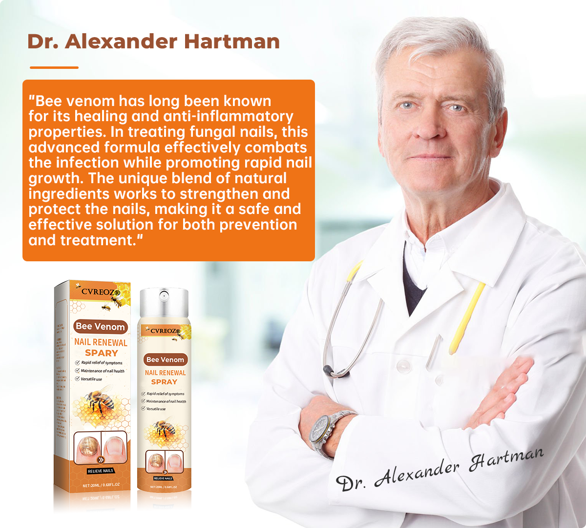Dermatolรณgovia dรดsledne odporรบฤajรบ pokroฤilรบ formulรกciu Cvreozยฎ Bee Venom Nail Renewal Spray, ktorรก je klinicky overenรก v boji proti odolnรฝm plesลovรฝm infekciรกm a podporuje komplexnรบ obnovu nechtov prostrednรญctvom svojho trojitรฉho mechanizmu รบฤinku: medicรญnske antifungรกlne vlastnosti poฤas lieฤby efektรญvne odstraลujรบ patogรฉny, keratรญnom obohatenรฝ komplex opravuje a posilลuje poลกkodenรบ nechtovรบ ลกtruktรบru a rast podporujรบca formula podporuje zdravรบ regenerรกciu โ ฤo z nej robรญ profesionรกlnu voฤพbu pre terapeutickรฉ zรกsahy i preventรญvnu starostlivosลฅ o nechty. Klinickรฉ ลกtรบdie preukรกzali, ลพe po pravidelnom pouลพรญvanรญ poฤas ลกtyroch tรฝลพdลov sa vรฝznamne zlepลกila integrita aj vzhฤพad nechtov.